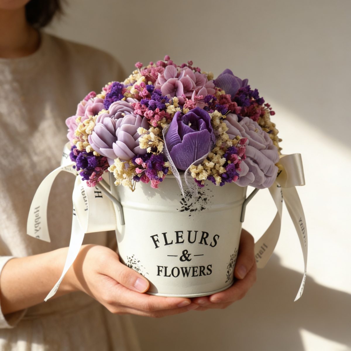 Соев букет, който не увяхва – стилен подарък с аромат, който остава.