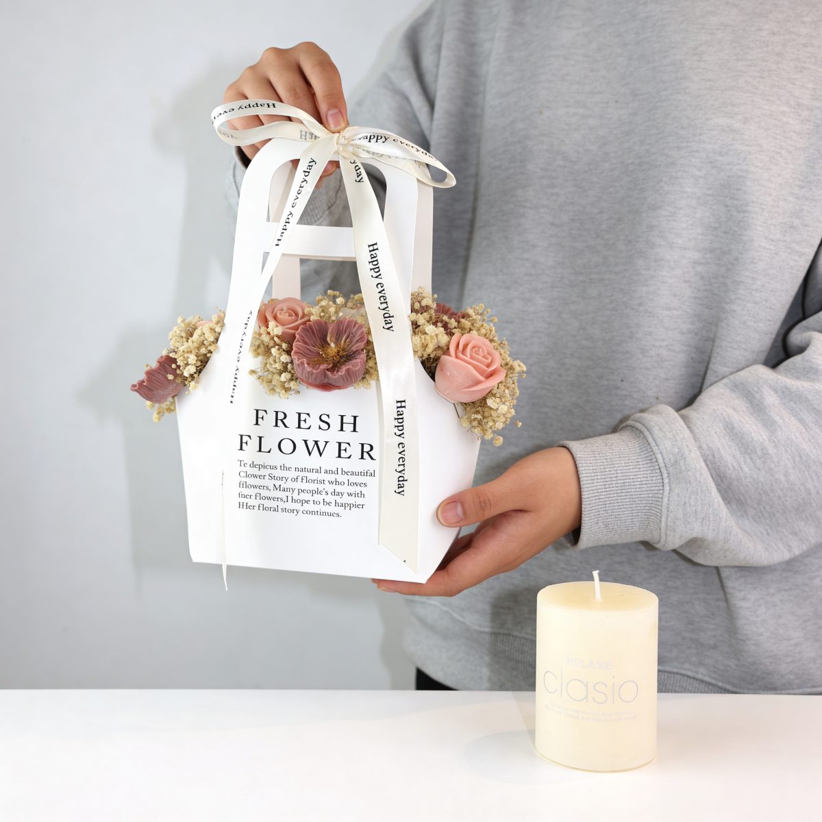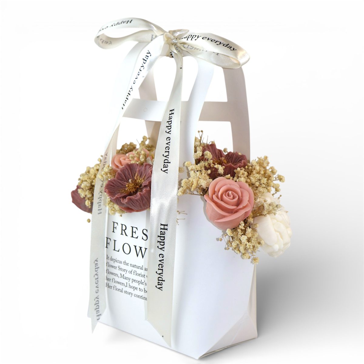 🎀🌸 Букет от соеви свещи в картонена подаръчна торбичка