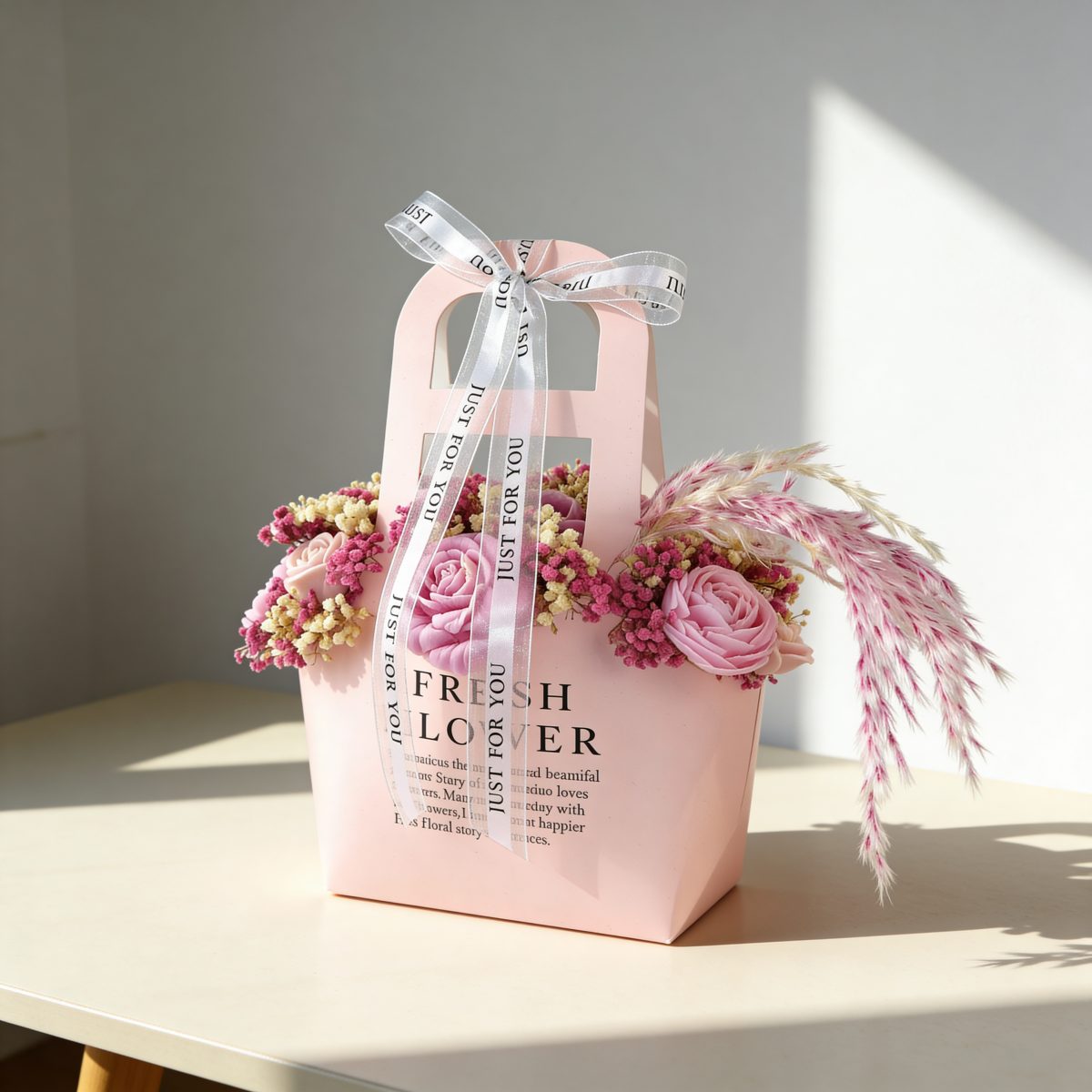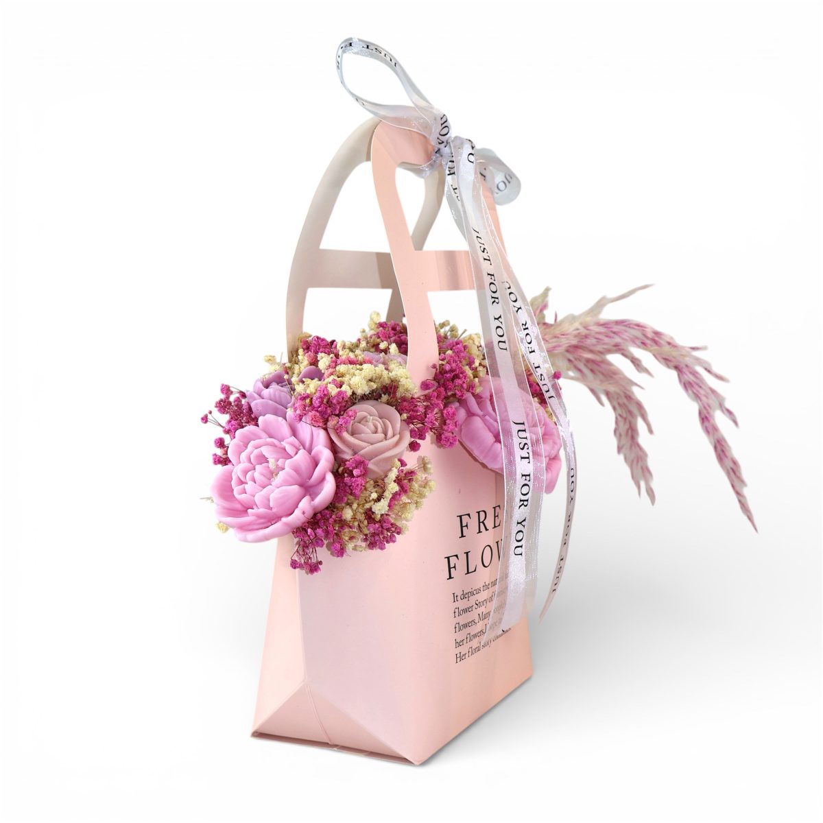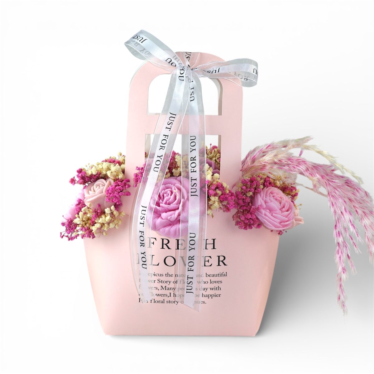 🎀🌸 Букет от соеви свещи в картонена подаръчна торбичка