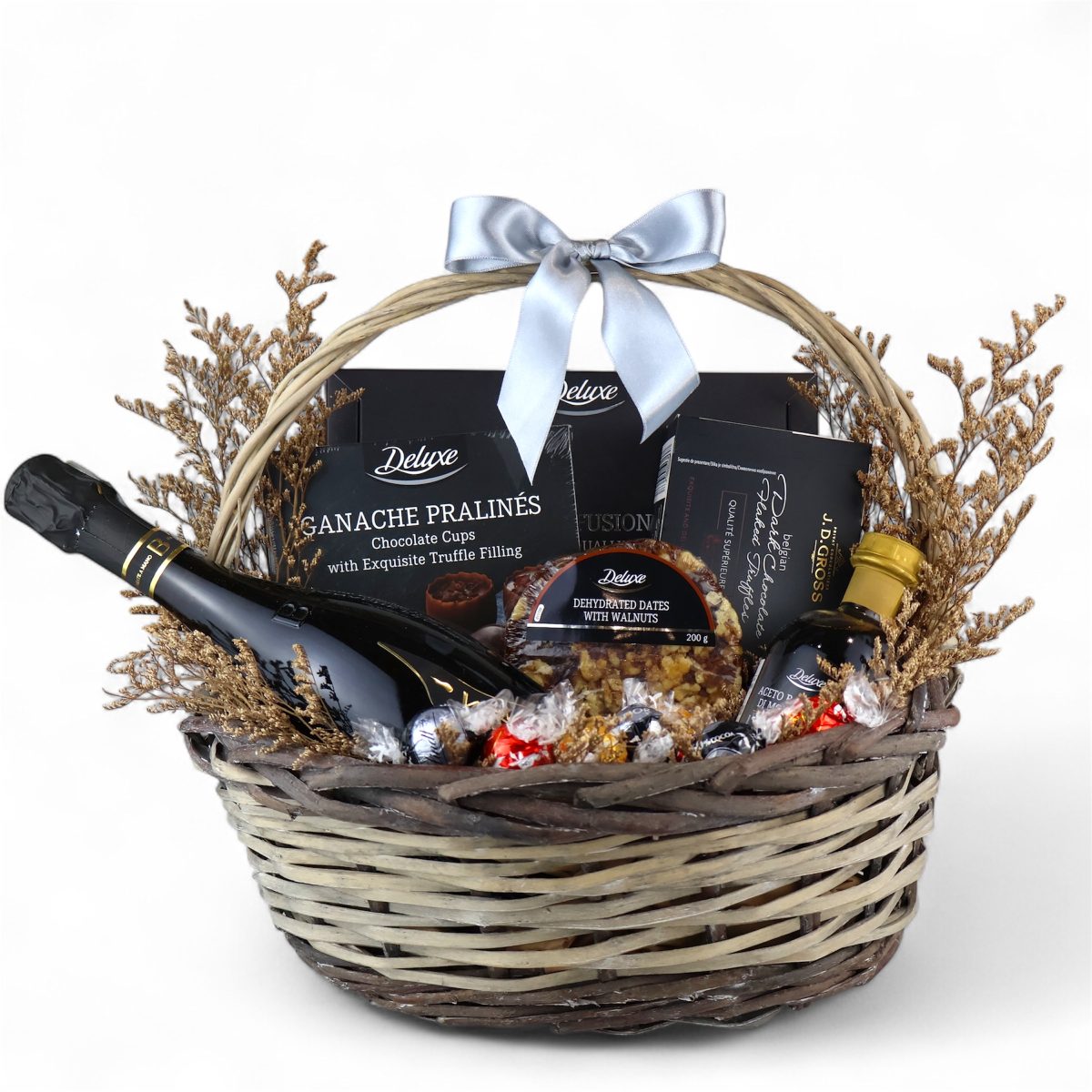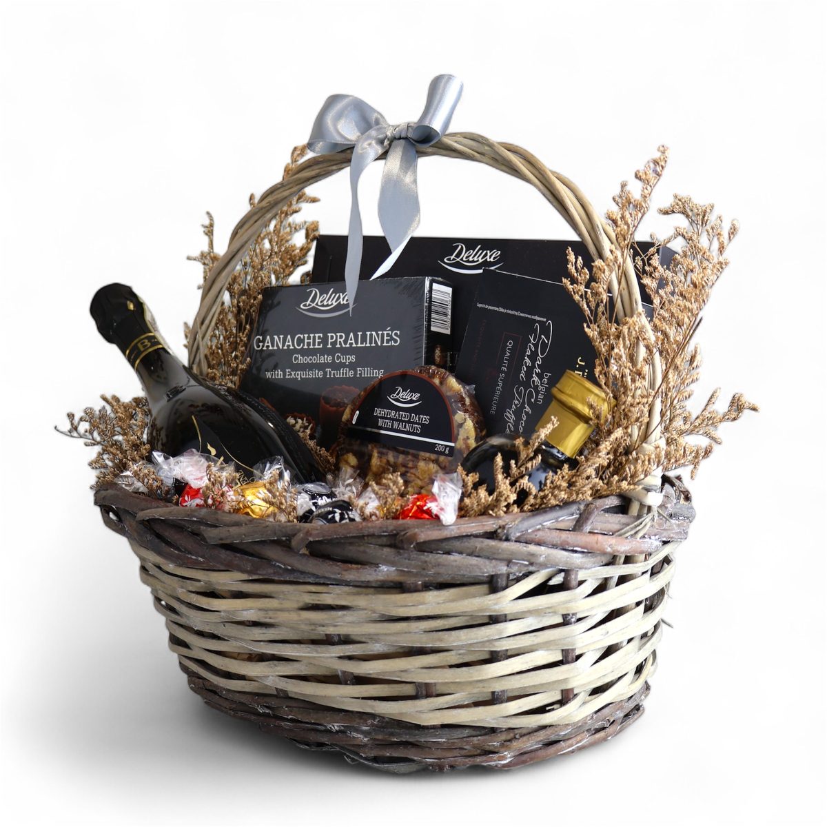 Луксозна подаръчна кошница с пенливо вино и Deluxe подбор