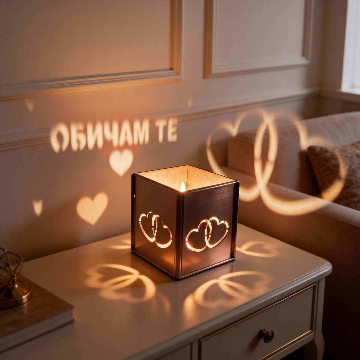 прожектира романтични сенки по стените и създава интимна, уютна атмосфера.