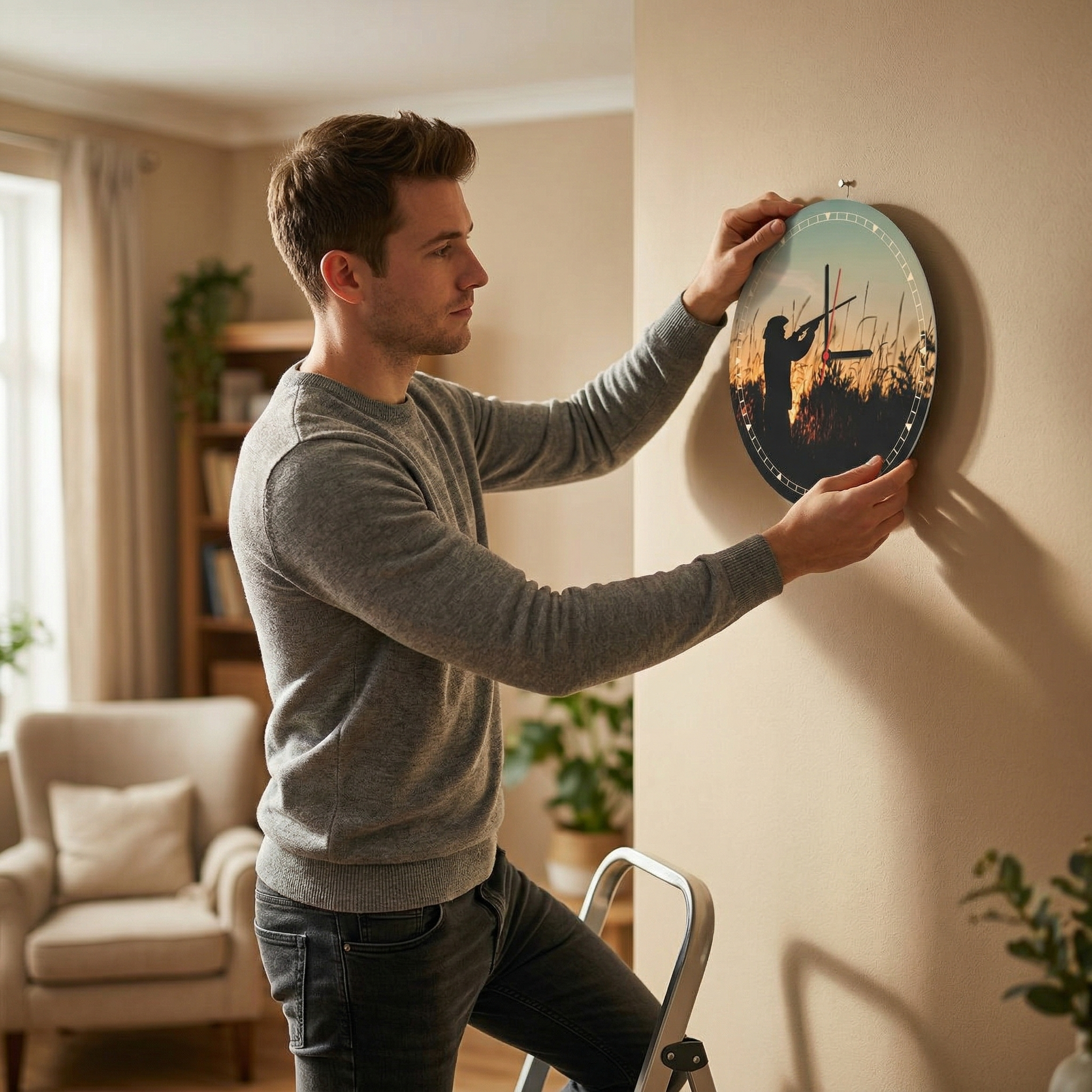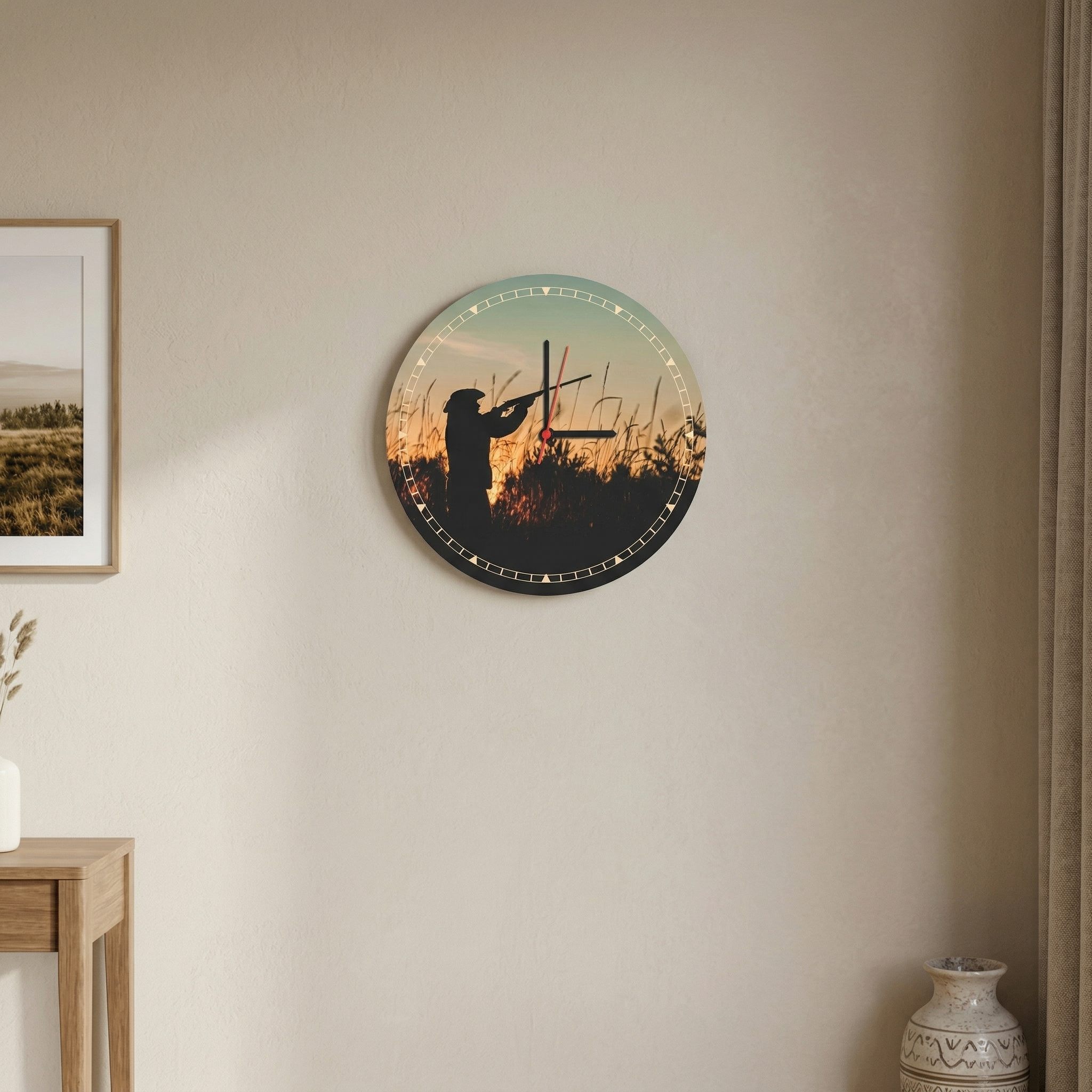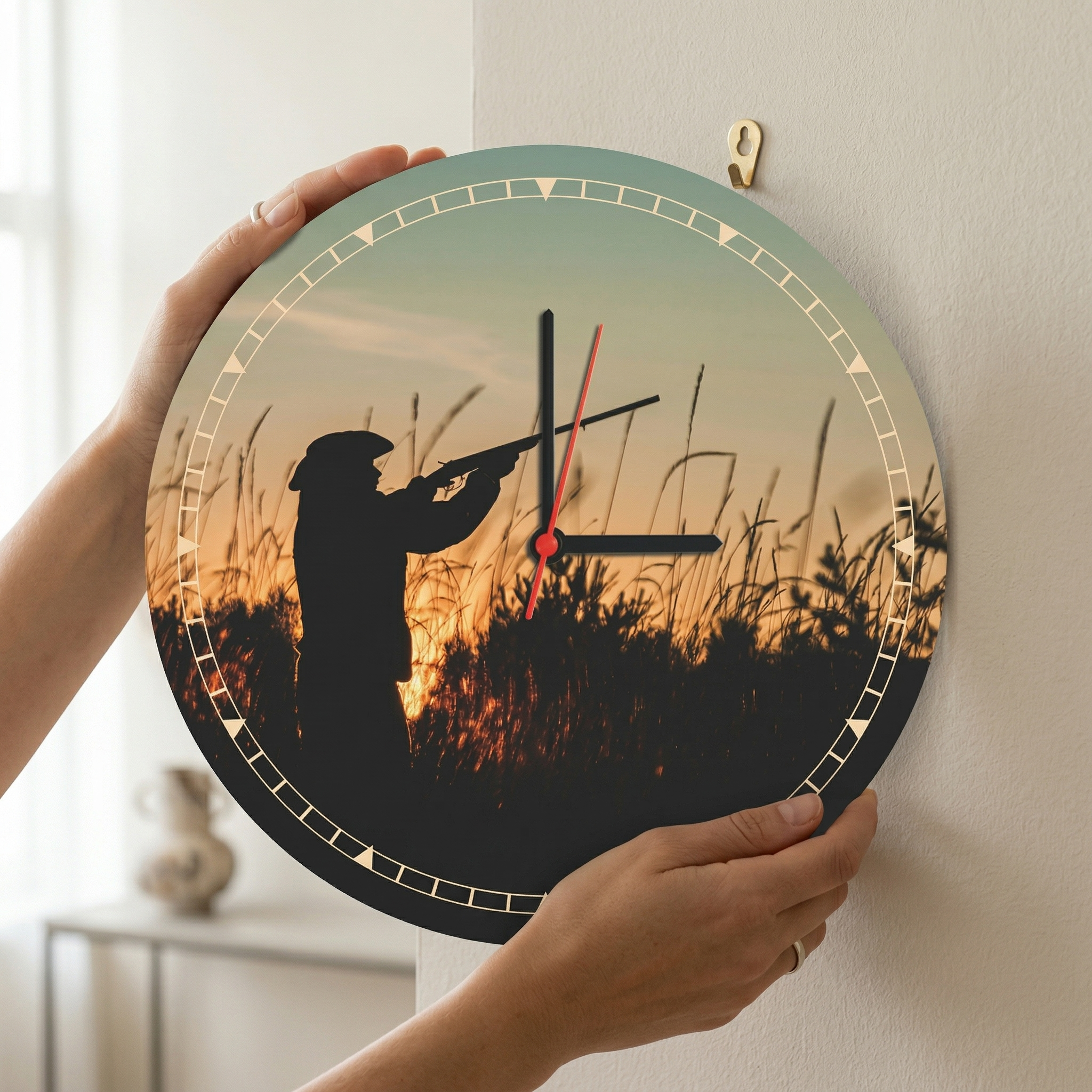 Поръчайте стенен часовник „Ловец при залез“ бързо и удобно онлайн. Подходящ избор за вашия дом или като оригинален подарък, който ще направи впечатление.